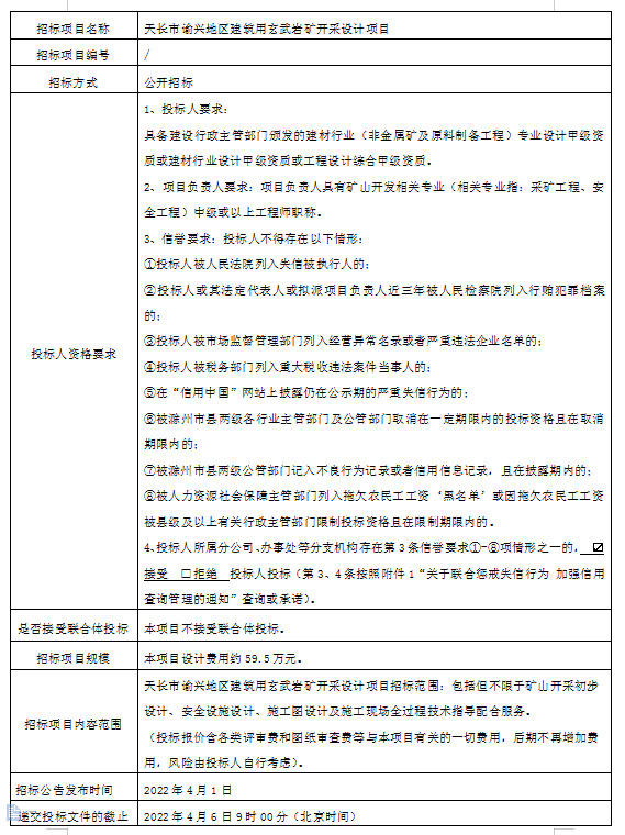 天長市諭興地區(qū)建筑用玄武巖礦開采設(shè)計(jì)項(xiàng)目招標(biāo)公告
