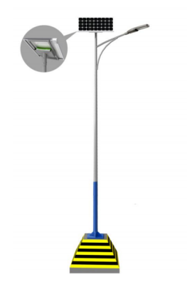 | 5 | 燈桿(含支架) | 高7米,錐型A字臂燈桿,燈臂長1.2m,上口徑70mm,下口徑160mm,壁厚不低于3mm,上白下藍。 材質(zhì)采用Q235碳鋼,熱鍍鋅表面靜電噴塑,內(nèi)外表面防腐處理。 法蘭為320mm*320mm*12mm,預埋件4-M18*280*750。 |