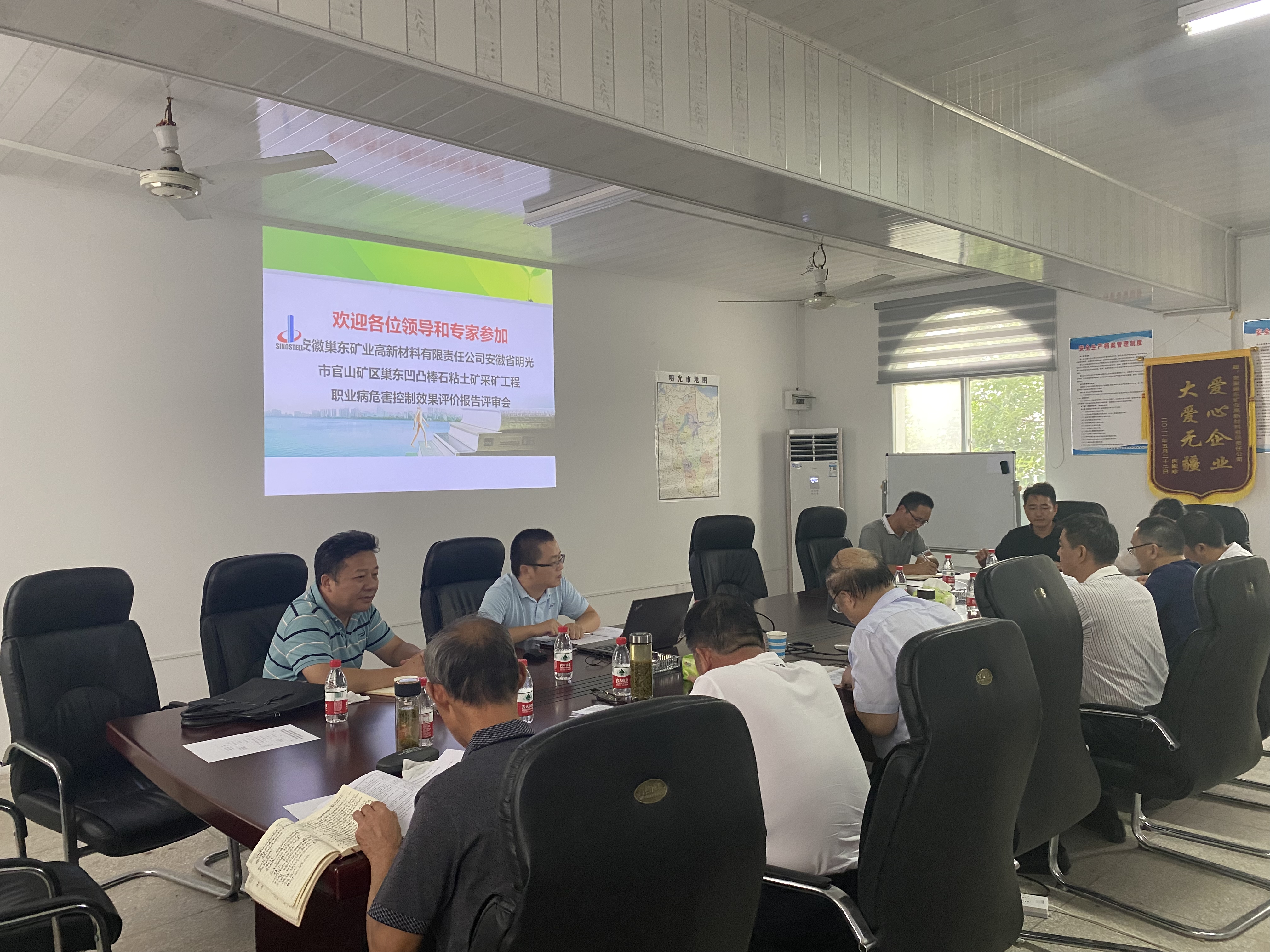 8月23日下午,安徽省明光市巢東凹凸棒石粘土礦(首采區(qū))采礦工程職業(yè)病危害控制效果評價報告評審及職業(yè)病防護設施驗收會議在興明礦業(yè)會議室組織召開,馬鞍山市疾控中心、滁州市衛(wèi)生監(jiān)督局、安徽省瑯琊山礦業(yè)總公司等單位3名專家及滁州市、明光市衛(wèi)生健康委員會相關(guān)領導參加會議,興明礦業(yè)總經(jīng)理王秀超主持會議。