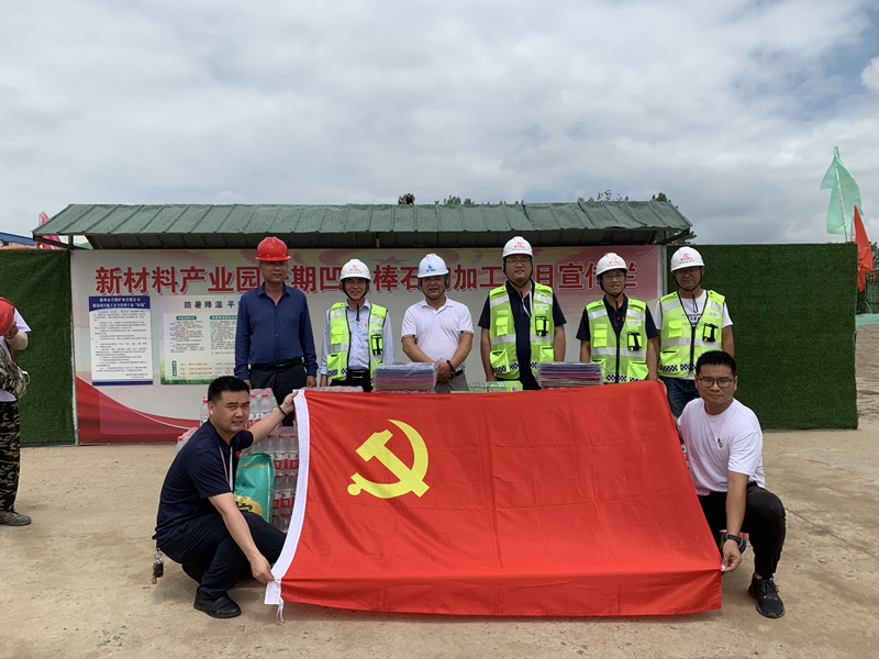 送清涼。6月22日,黨支部書記魏金龍帶領(lǐng)黨員志愿者到凹凸棒加工廠項(xiàng)目部、玄武巖加工廠項(xiàng)目部、環(huán)山道路項(xiàng)目部,為施工一線的黨員職工送去礦泉水、綠豆、西瓜、藿香正氣水等防暑降溫物資。