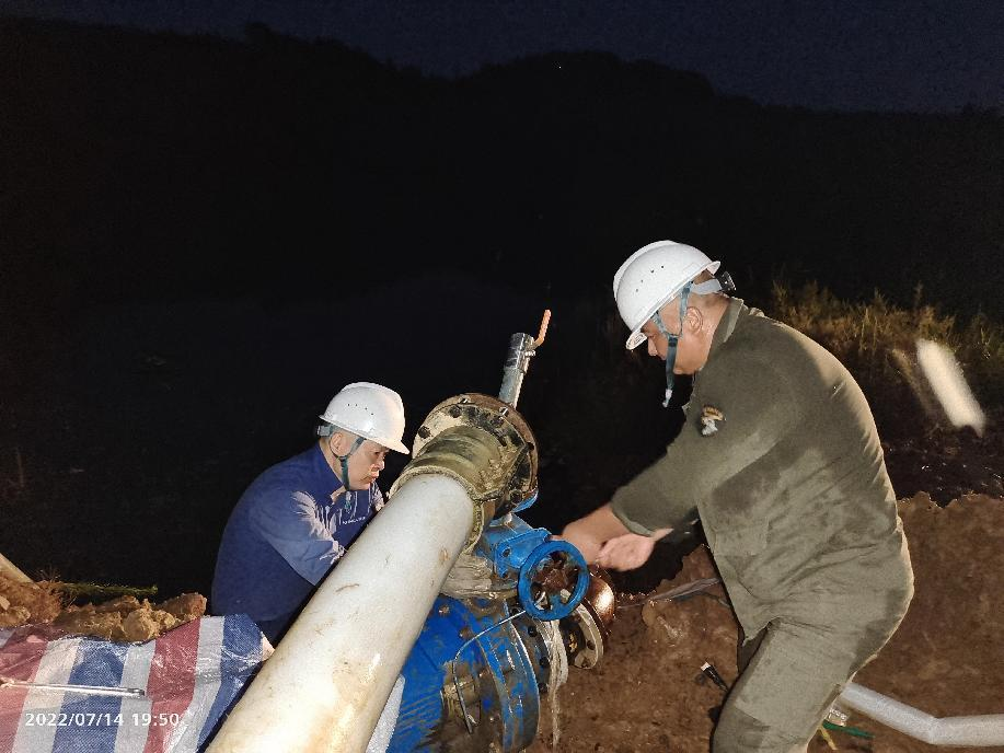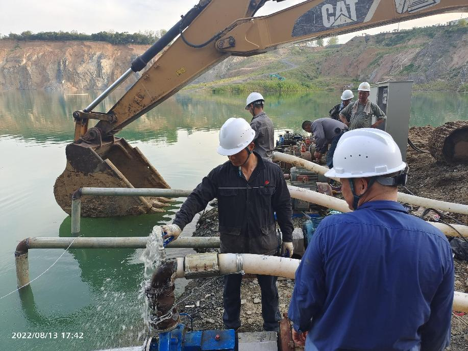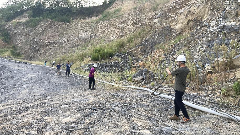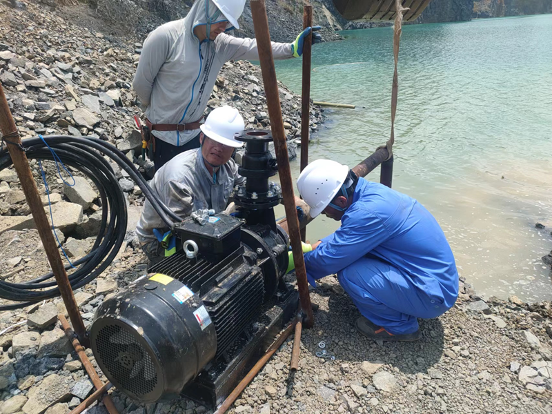 抗旱方案有了,可是要想把水從70米深的礦坑內(nèi)抽到地面,不但需要揚(yáng)程特別高的水泵,還需要高規(guī)格長距離的水管和電纜,還有很多配套零部件要采購。旱情就是命令,抗旱就是責(zé)任,興天礦業(yè)副總經(jīng)理趙崗牽頭落實(shí)抗旱物資采購,親自指揮設(shè)備調(diào)運(yùn)安裝,帶領(lǐng)公司抗旱突擊隊(duì)和社區(qū)干部深入礦坑,一起研究水泵需要多大功率安裝在什么地方、水管需要多粗從哪里下放、電纜需要多長從哪里接電等問題。方案制定好了,老百姓的水稻不能等,挖掘機(jī)第一時(shí)間進(jìn)場整理場地,興天礦業(yè)和社區(qū)準(zhǔn)備的水泵、水管電纜等也迅速到位,抗旱突擊隊(duì)與社區(qū)干部群眾一起與時(shí)間賽跑,從早到晚緊張施工,一心想著的就是早點(diǎn)把水抽上去,盡量把旱情影響降到最低。